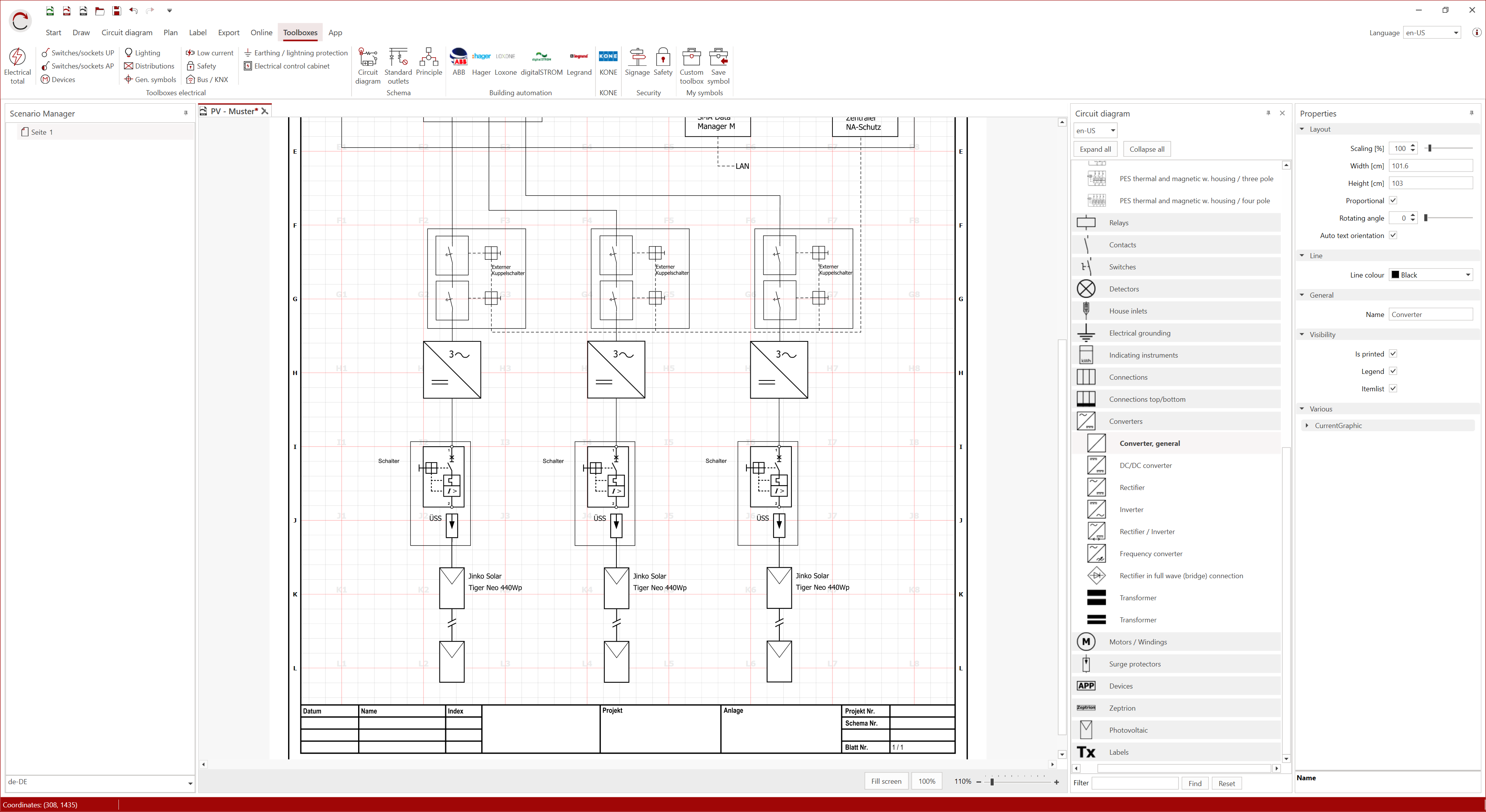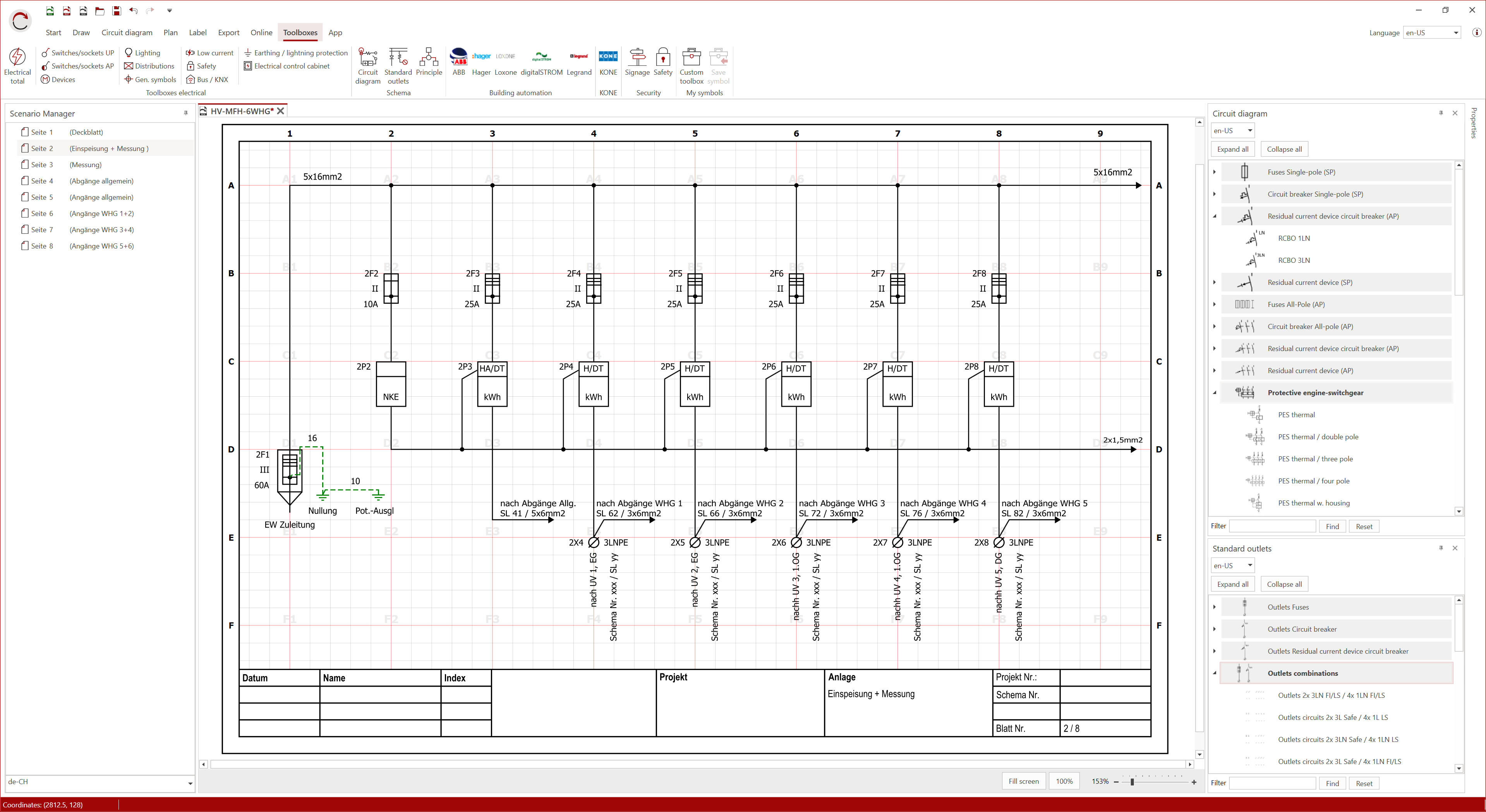 You can display both single-pole and multi-pole diagrams. Unlimited page numbers, the ability to import and customise existing PDF diagrams, and cross-references support you in creating simple circuit diagrams.