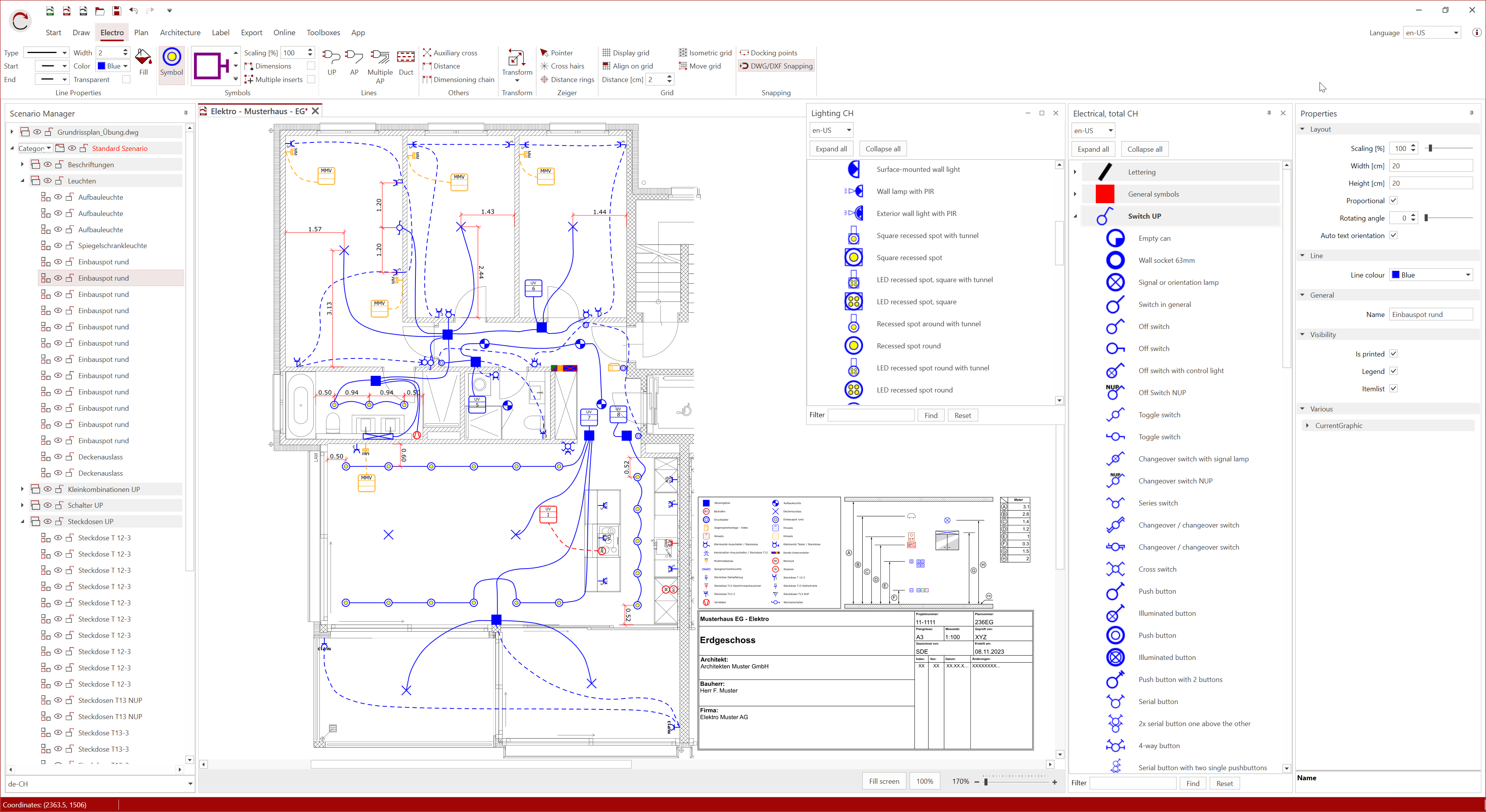 With RED CAD, you get a professional tool for creating installation plans and diagrams on your Windows PC. RED CAD can process the most common file formats, including DWG/DXF/PDF. You can import and re-export plans in these formats. RED CAD already includes symbol libraries so you can get started right away.