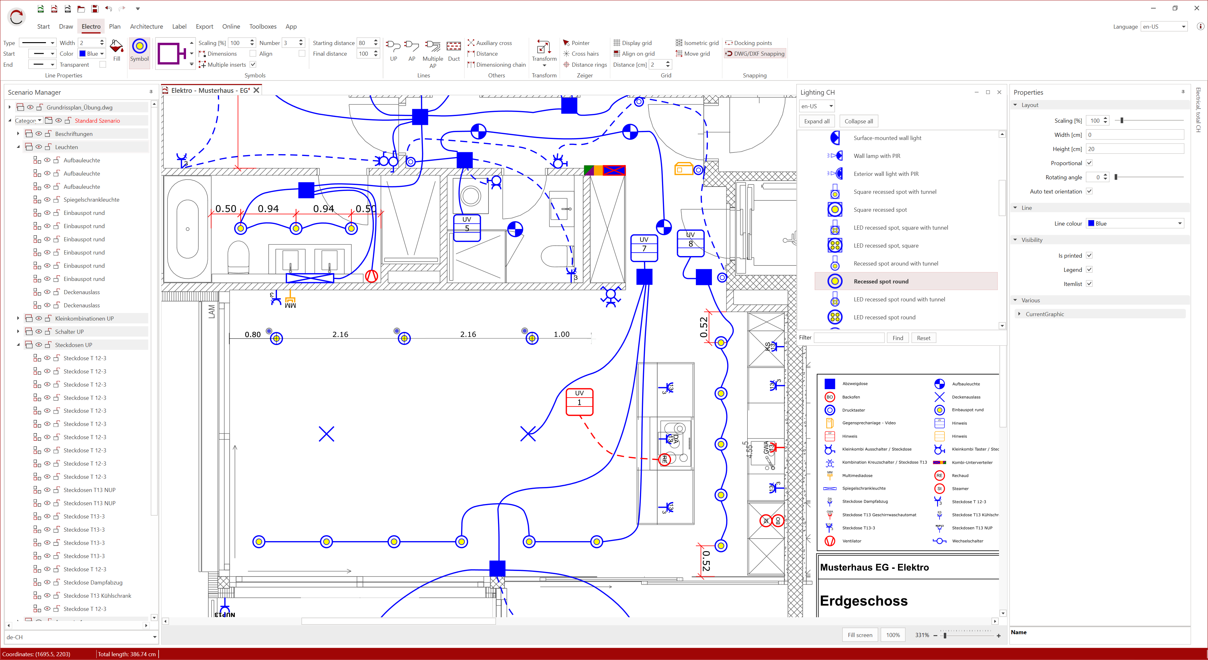 Header, room stamps, customisable legends, and the export of parts lists round off your project documentation. Plan efficiently, innovatively, and enjoyably right from the start.