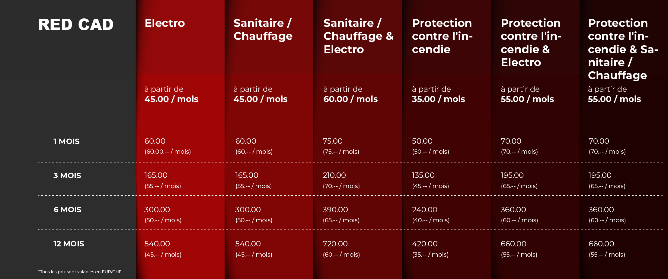 L'assistance est incluse dans tous les modèles, afin que vous puissiez planifier efficacement et sans souci à tout moment. Et si vous ne souhaitez plus utiliser RED CAD, vous pouvez résilier votre contrat de location très facilement par e-mail, sans obstacles cachés.
